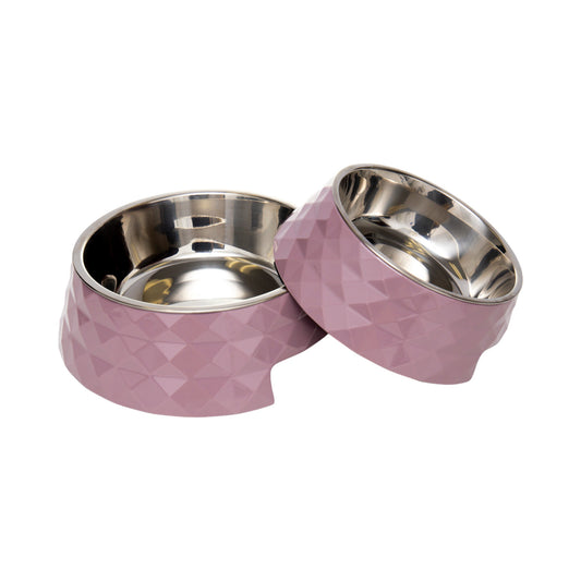 Country Living Set of 2 Diamond Twill Melamine Dog Bowls with Removable Stainless Steel Inserts – Wood Rose