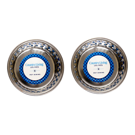 Country Living Set of 2 Coated Stainless Steel Heavy Dog Bowls - Ideal for Medium to Large Breeds
