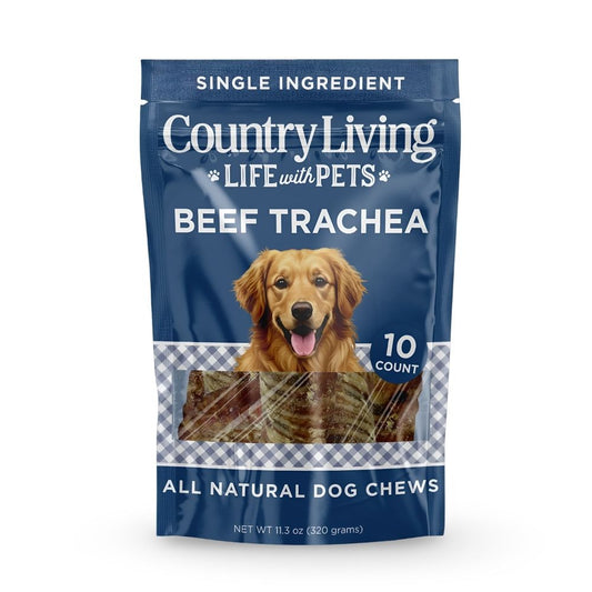 Country Living 6” Beef Trachea Dog Chews – 10 Count Bag – All-Natural, Single-Ingredient, Long-Lasting Dog Treats – High in Protein & Natural Glucosamine – Supports Dental Health