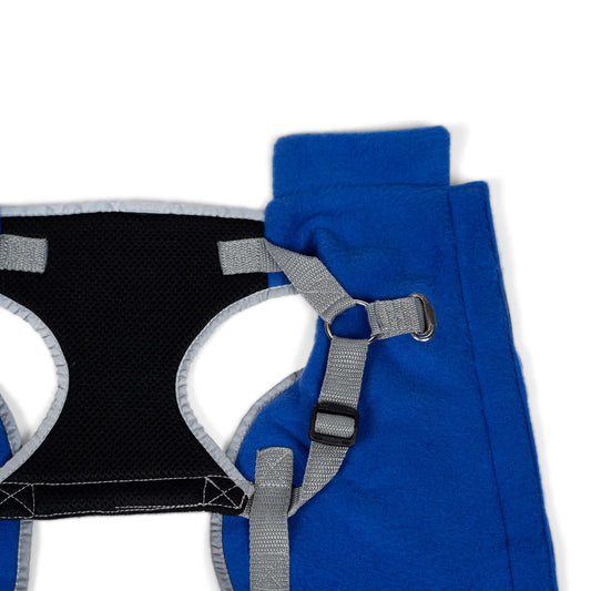 2-in-1 Thermal Dog Fleece Jacket with Removable Harness – Royal Blue