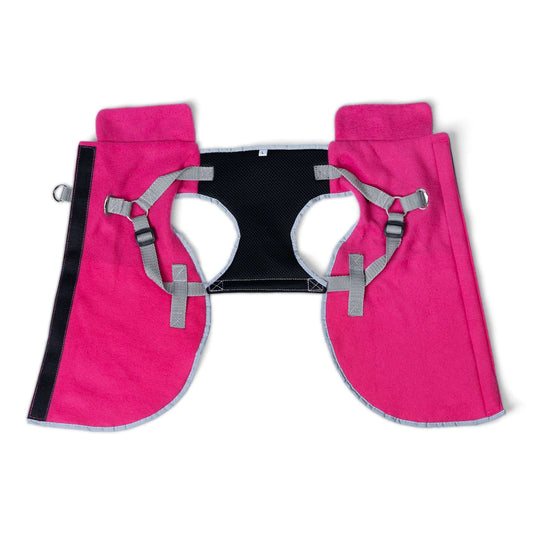 2-in-1 Thermal Dog Fleece Jacket with Removable Harness – Fuchsia