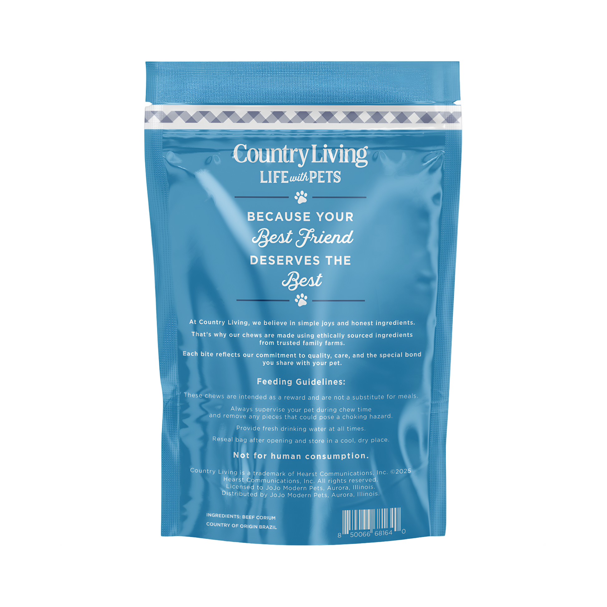Reward your dog with a delicious chew that goes beyond simple satisfaction — Country Living 12” Braided Collagen Sticks for Dogs. Crafted from 100% beef collagen, these braided 12” chews are naturally rich in protein and collagen to help promote healthy joints, strong muscles, and a shiny coat.